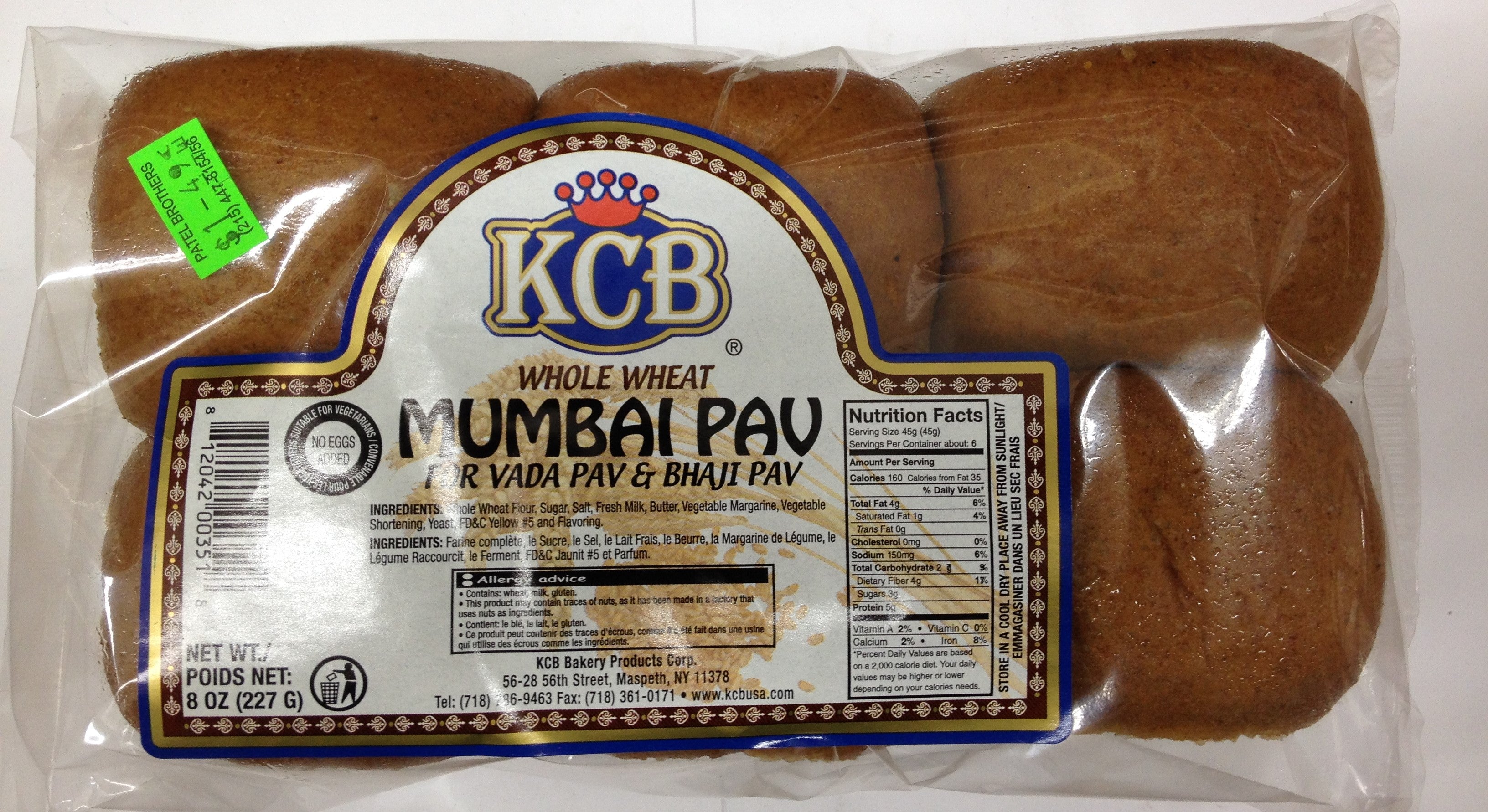 KCB Kashmir Crown Baking Whole Wheat Mumbai Pav 8 Oz - 227 Gms