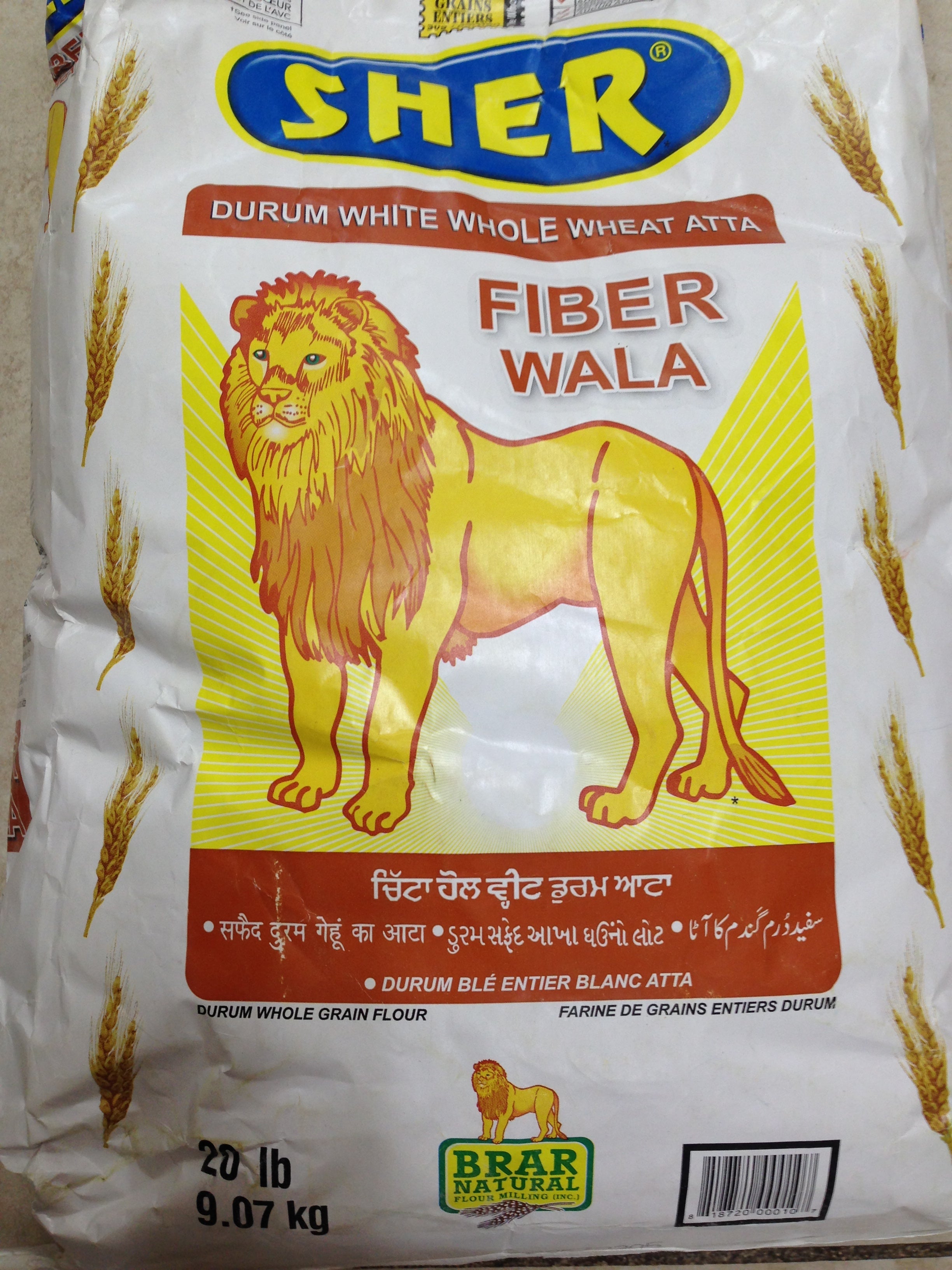 Sher Duram White Whole Wheat Atta 20 LB - 9 KG